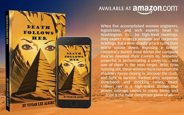 Vivian Lee Alkireis a Grandmother, artist, and former Program Analyst who discovered her passion for storytelling while working in the fast-paced world of an aerospace organization. Death Follows Her was inspired by the deep friendships she formed with her coworkers and the many trips they shared to Washington, D.C. It stands as a tribute to their courage, loyalty, and strength. The character of Caitlin draws inspiration from Vivian’s daughter, whose quiet perseverance and natural leadership bring a steadfast calm to those around her.