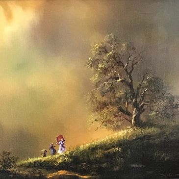 During my early years in Texas, I tried my hand at painting but could never reach a level of satisfaction. As a Navy wife my husband eventually got stationed in my hometown Corpus Christi, Texas. I was fortunate enough to take lessons there from a teacher (Sandra Day) who taught me how to paint using the Dick Turner method. Dick Turner is a famous Houston, Texas artist who died young but used his method of painting to teach students how to paint the "Old Masters" way. This method incorporates the use of glazes. The glazes are made up of mediums mixed with oil paint. The technique is like layering different clear colored cellophane sheets on top of the painted surface. I love the method and have learned the proper way of painting. When this technique is used you will get an iridescent look to the painting. You will notice that the painting will change as the light changes around it. There are no brush strokes. After my paintings are completely dry you can wipe the surface with a clean damp cloth. I learned more about painting in those lessons than I did in the previous years of painting. My watercolors and silks have benefitted from these lessons also. My goal is to have the viewer feel something when they view my artwork.